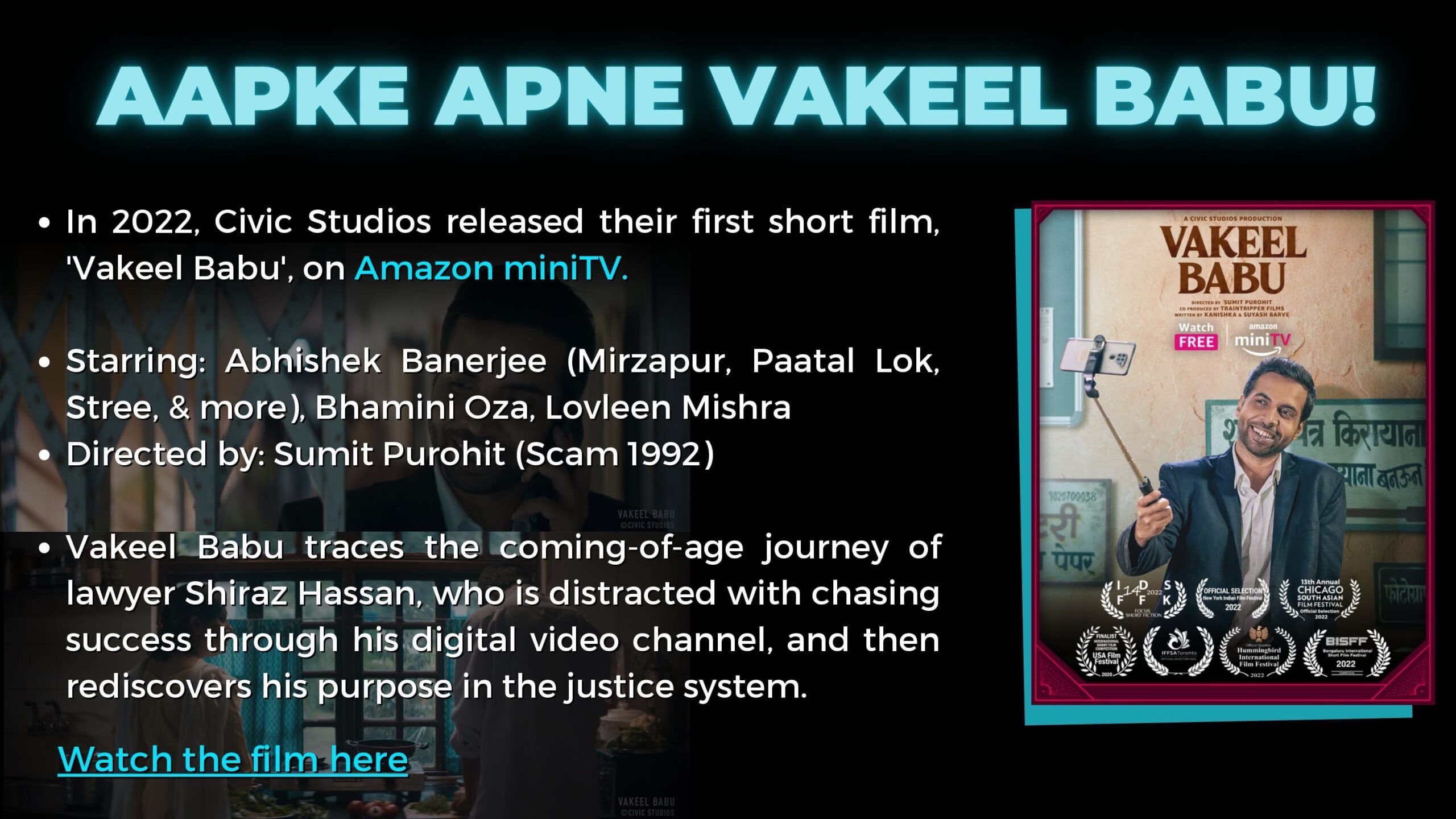 Nikhil Shambharkar is the Marketing Lead at Civic Studios. He has a decade long marketing experience in the Media & Entertainment industry. Having worked with leading entertainment houses in Mumbai, he has conceptualized and executed several marketing campaigns. He is a digital marketing enthusiast and a cinephile who loves to slip in movie dialogues in everyday conversations.